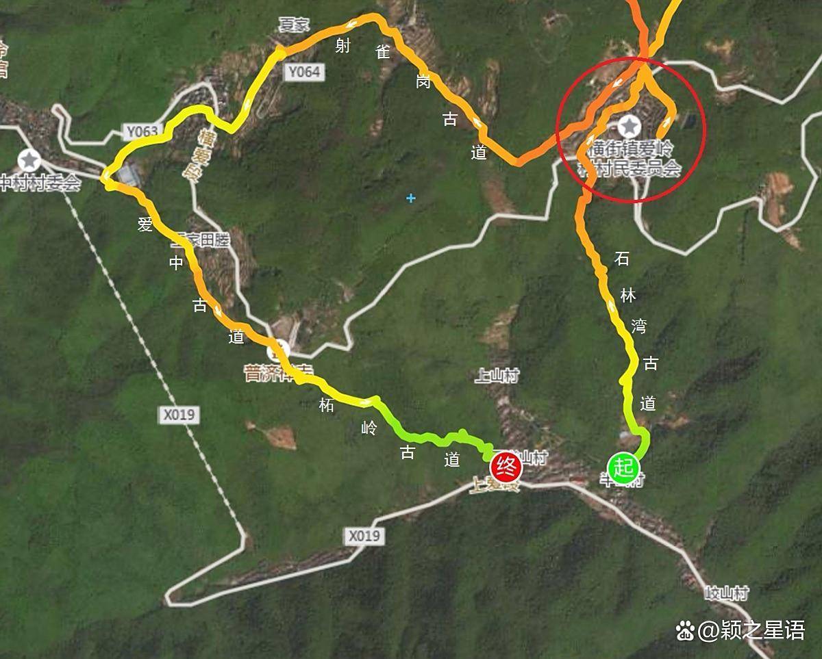 石岭湾古道、射雀岗古道、爱中古道、柘岭古道,四条古道正好形成环线,全程约七公里,用时三四小时,沿途风景优美,距离城区近,非常适合运动健身走古道。
